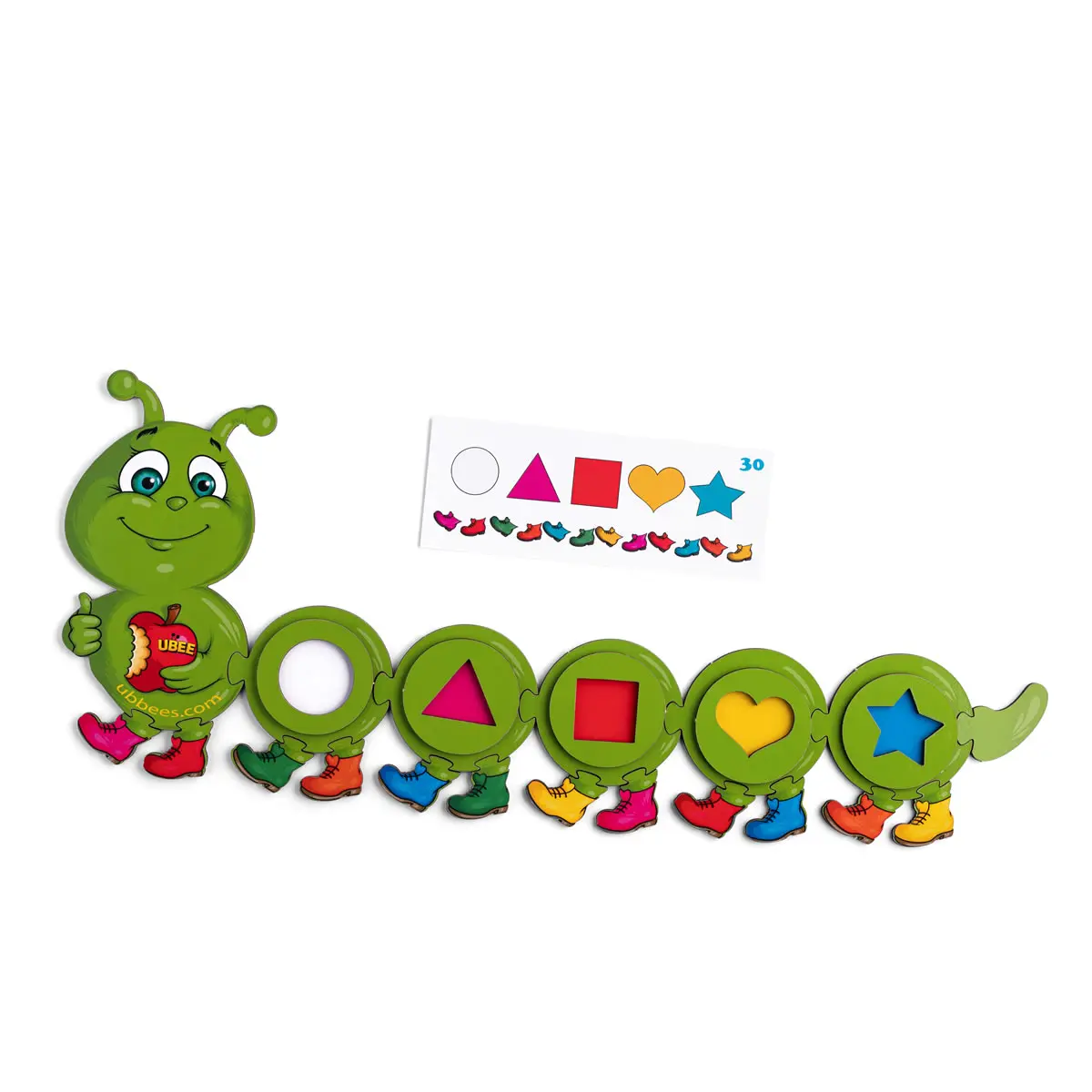 Vadovaudamasis kortelėmis, vaikas jungia formas, spalvas ir batukus, sudėlioja vikšrelės kūną ir kiekvieną kartą sukuria naują jos variantą. Žaidimas skatina stebėjimą, logiką ir kūrybišką mąstymą.