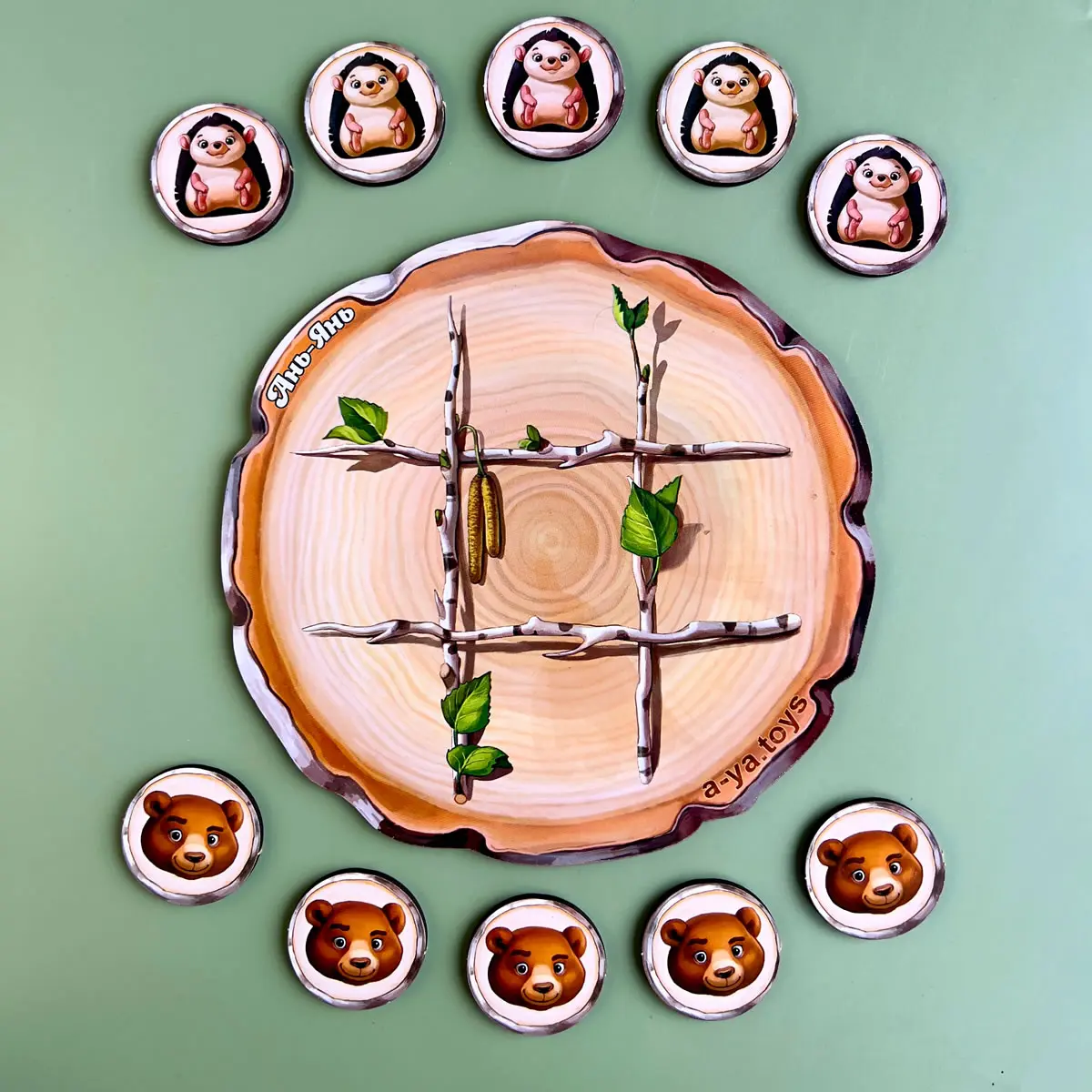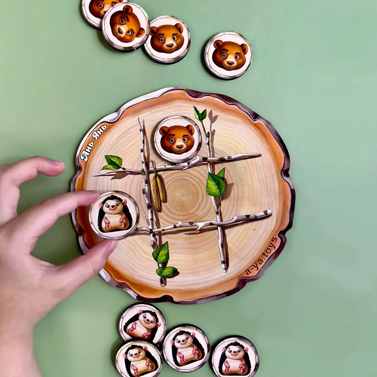 Vaikas pasirenka savo herojų – ežiuką arba meškiuką – ir pradeda strateginį žaidimą klasikiniame 3×3 lauke.