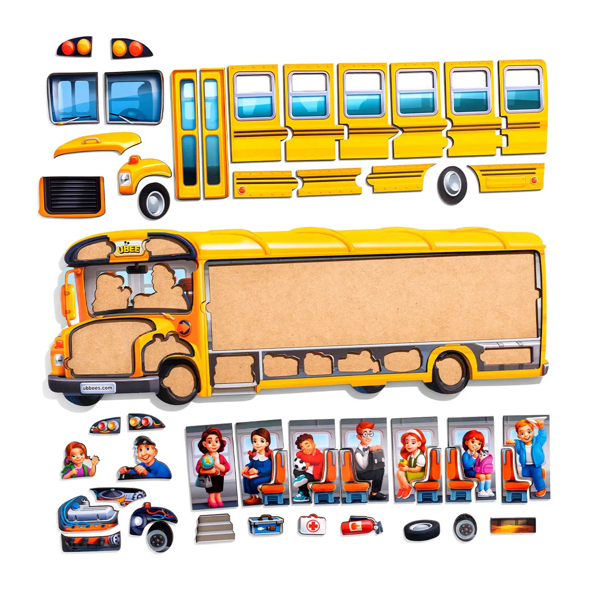 Didelė medinė dėlionė „Mokyklinis autobusas“