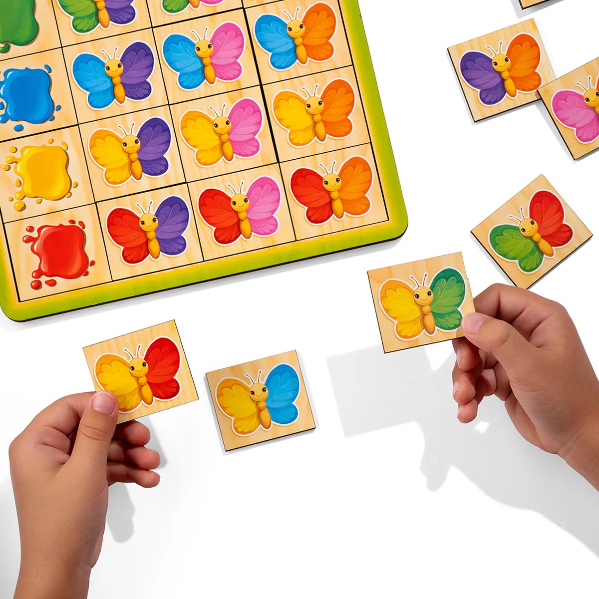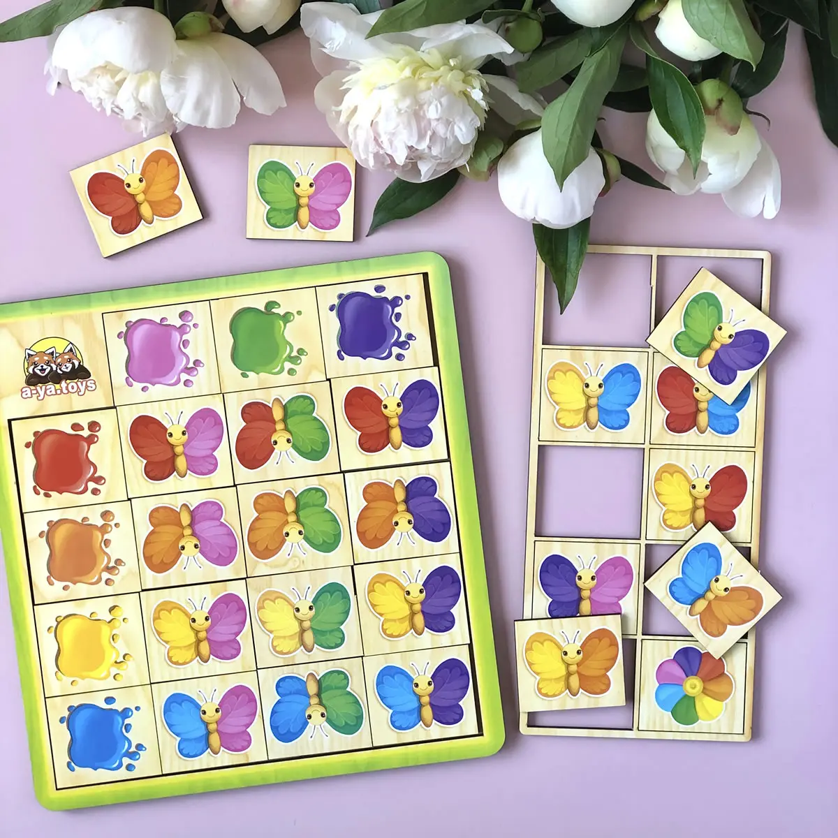 Tai žaidimas, kuris moko vaikus ne tik matyti spalvas, bet ir pastebėti dėsningumus, suprasti puses ir simetriją. Drugeliai ugdo gebėjimą lyginti, mąstyti ir priimti sprendimus savarankiškai — smagiai ir įkvepiančiai.