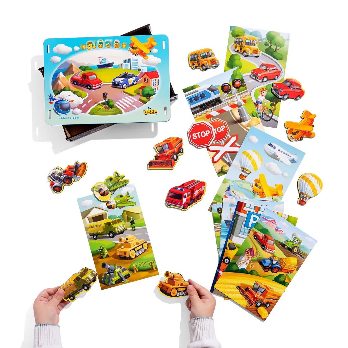Vaikas ieško atitikties tarp figūrėlės ir paveikslėlio, atidžiai stebi detales, įsimena, atpažįsta ir su džiaugsmu „uždengia“ savo transportą.