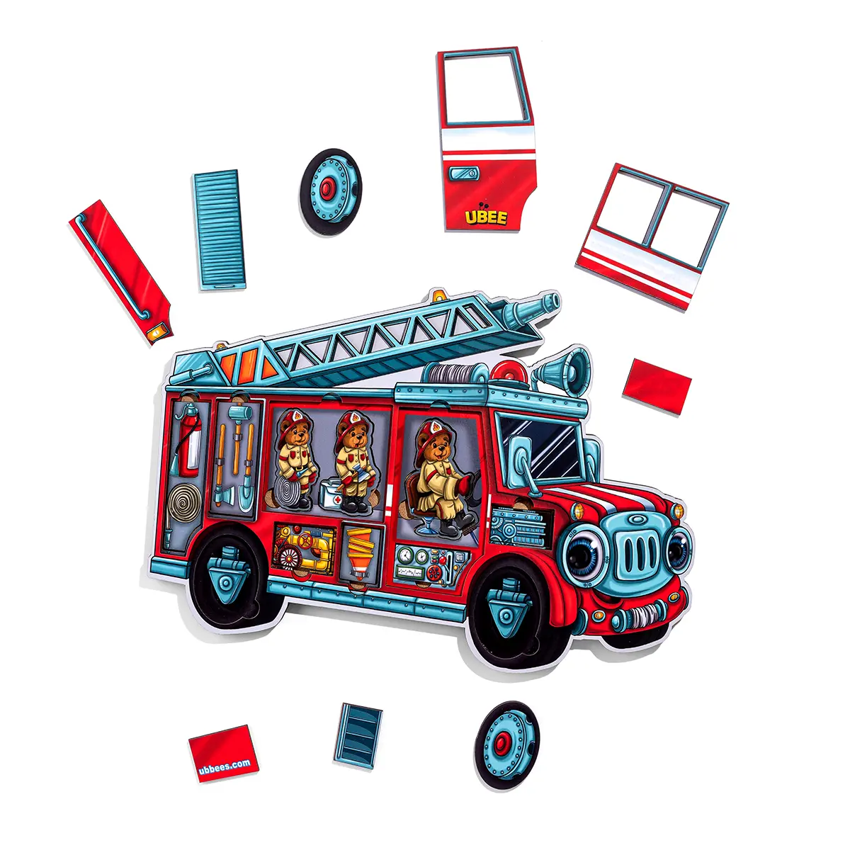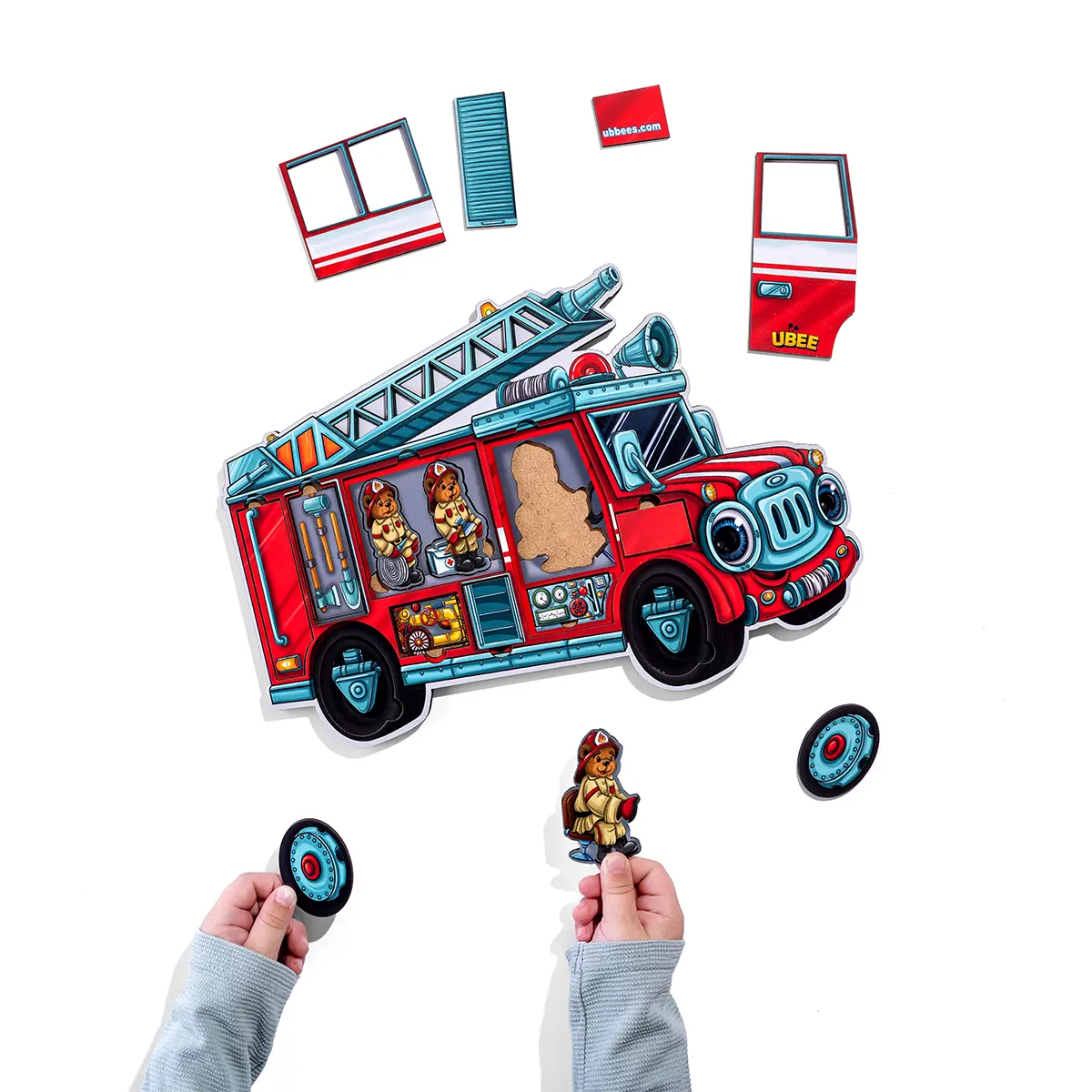 🚒 Įtraukiantis dvisluoksnis žaidimas, kuriame vaikas surenka gaisrinės automobilį, atpažįsta herojus ir kuria savo gelbėjimo istoriją!