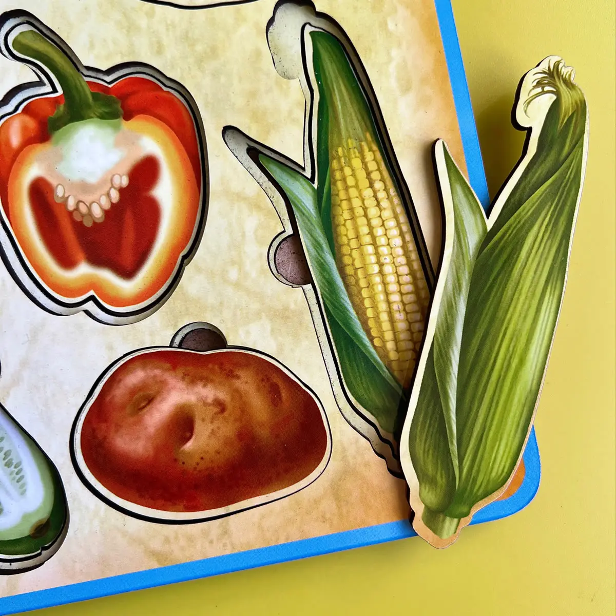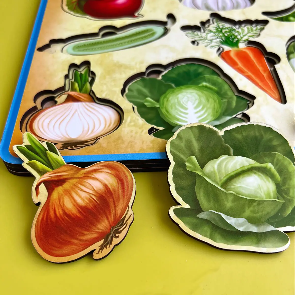 Rūšiavimo dėlionė–įdėklas „Daržovės išorėje ir viduje“