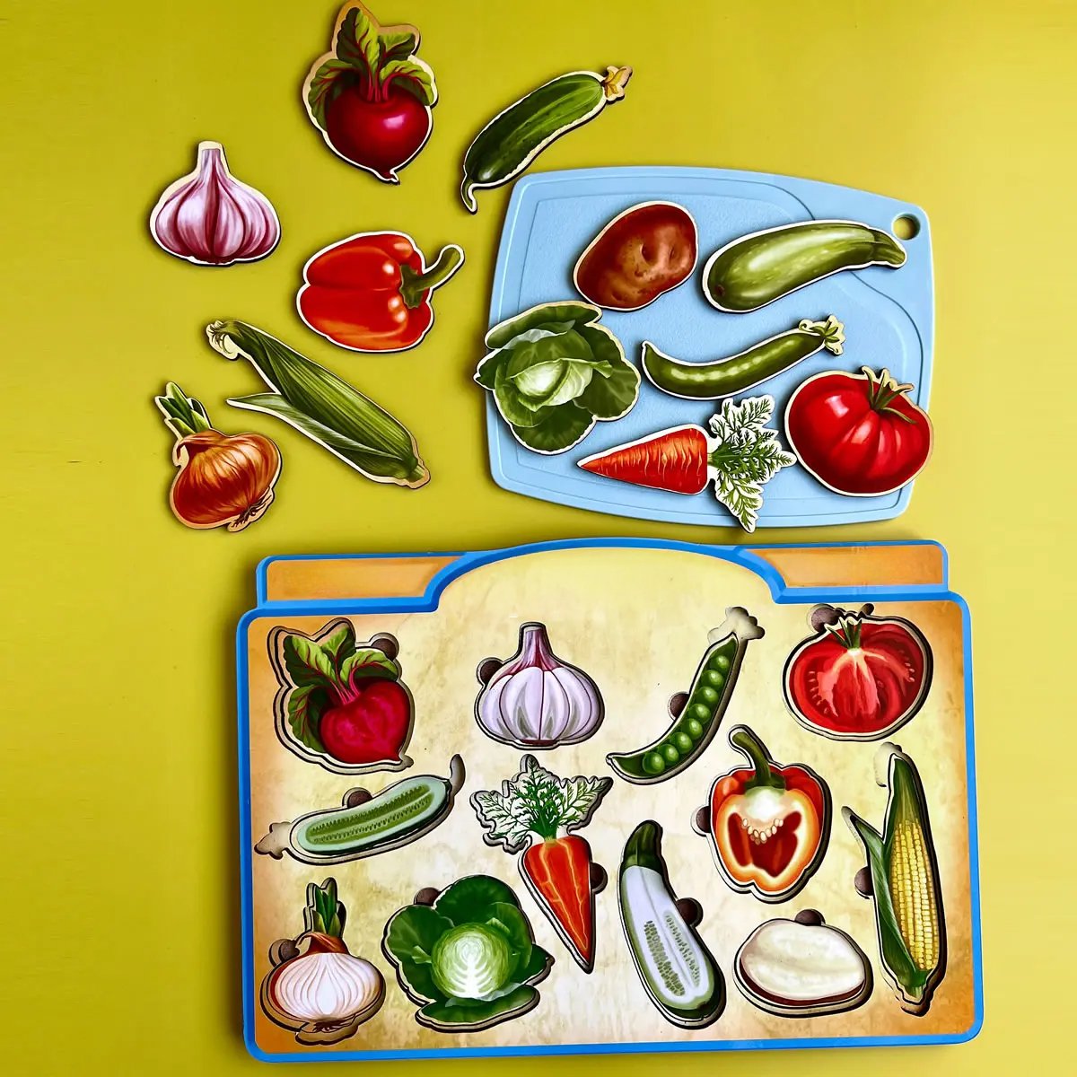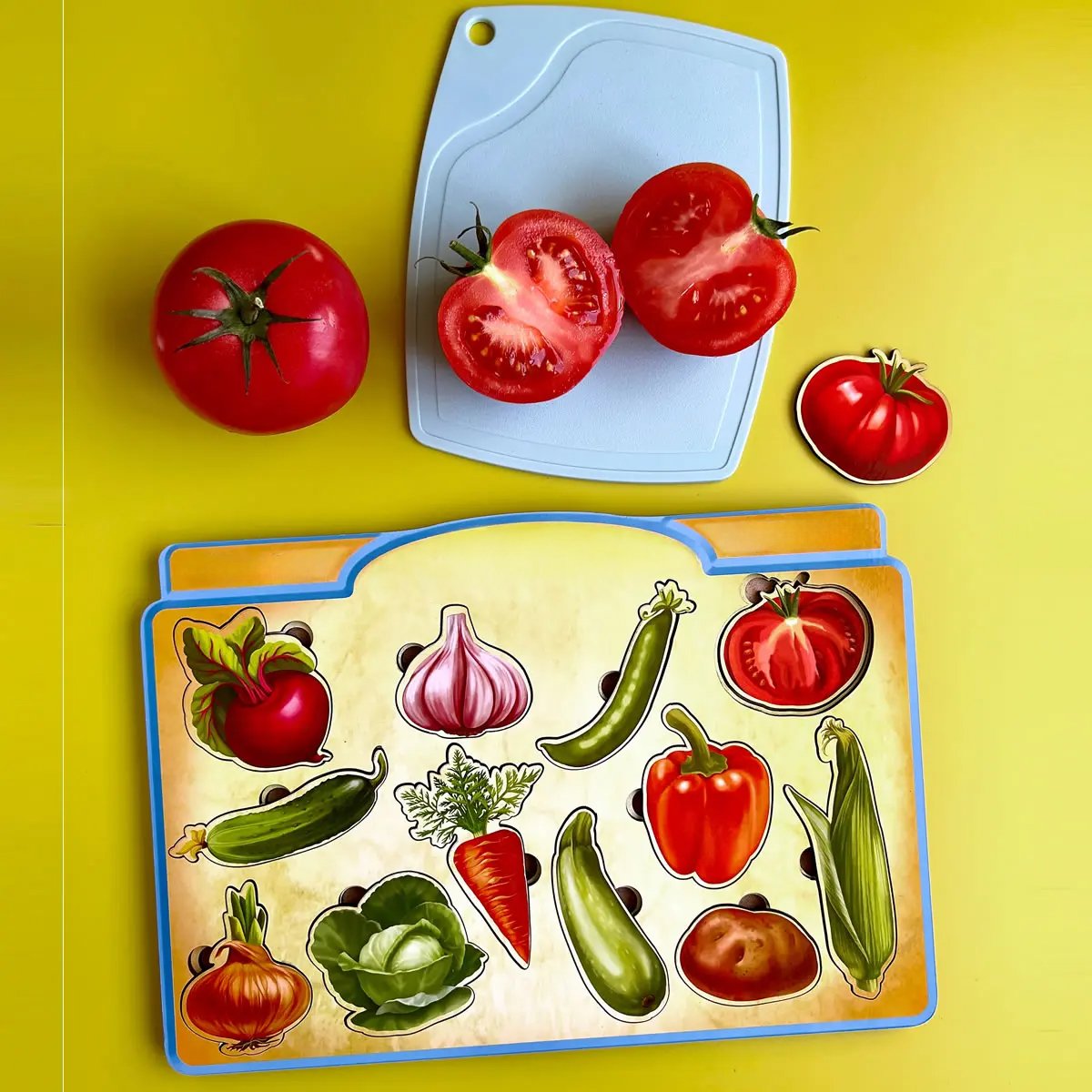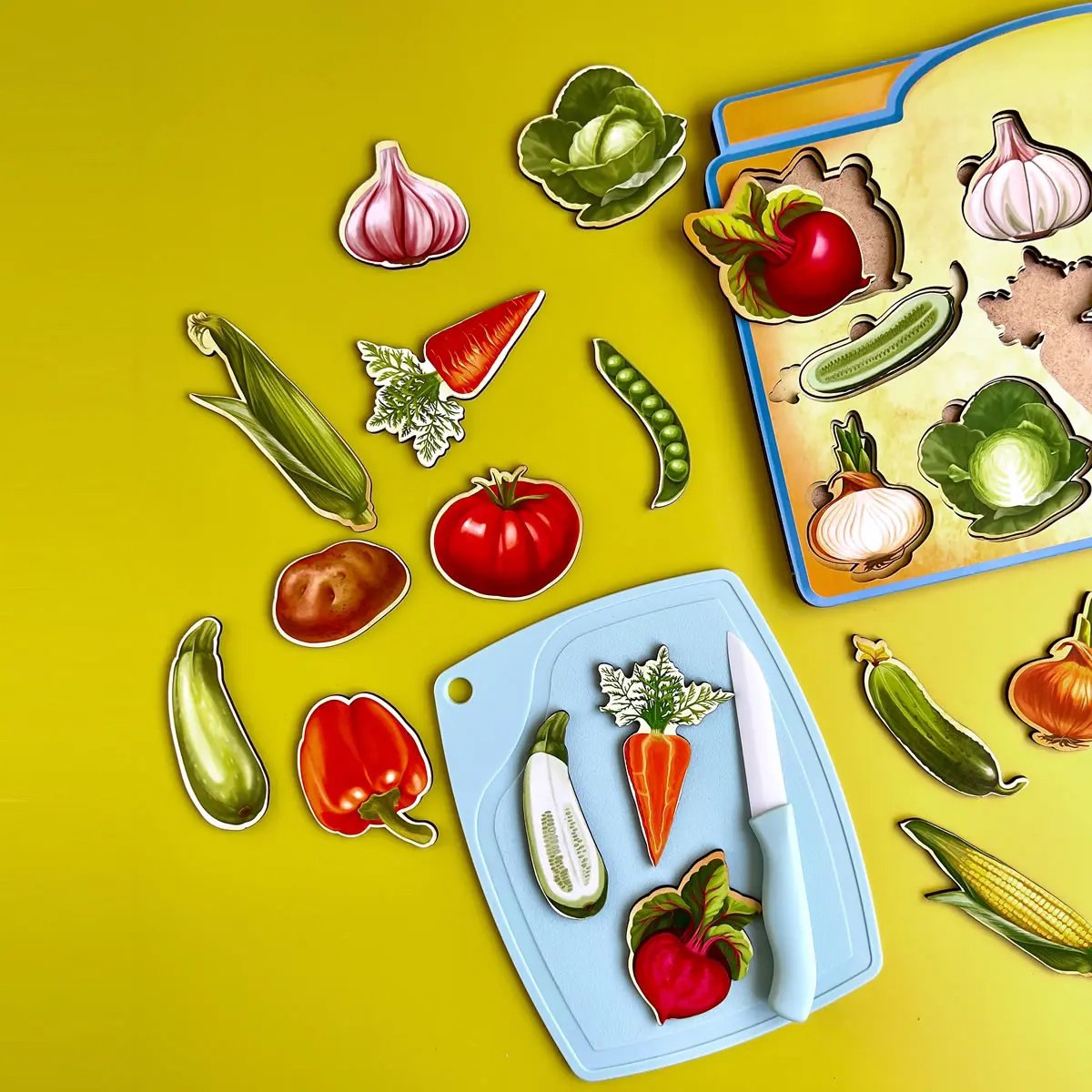 Šis žaidimas kviečia vaiką į smagų atradimų pasaulį: perpjautos daržovės atskleidžia vidinę pažįstamų produktų struktūrą.