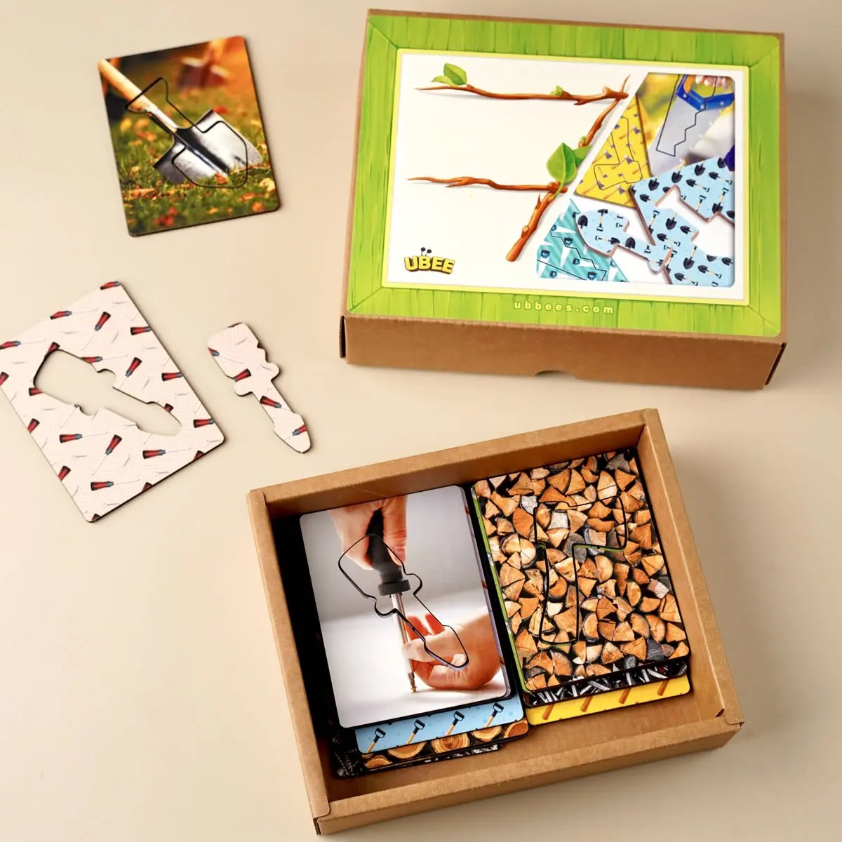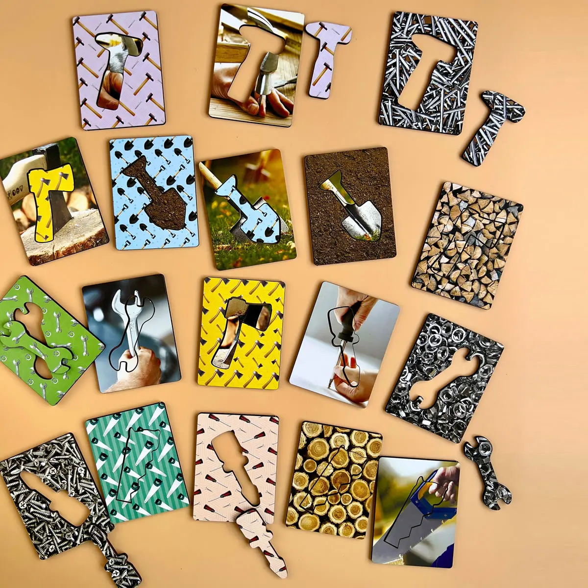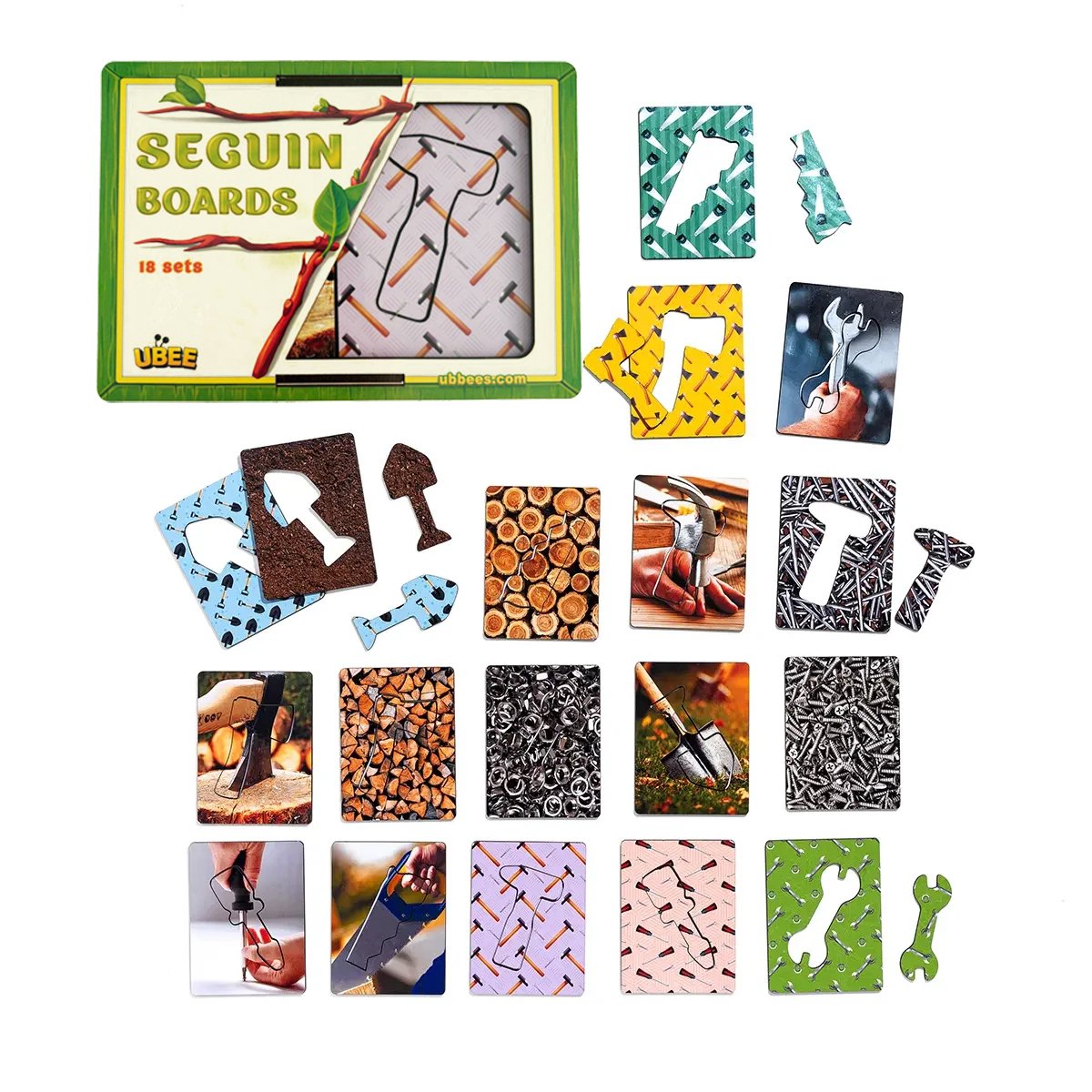 • 9 figūriniai įdėklai (plaktukas, pjūklas, kirvis, raktas ir kt.)